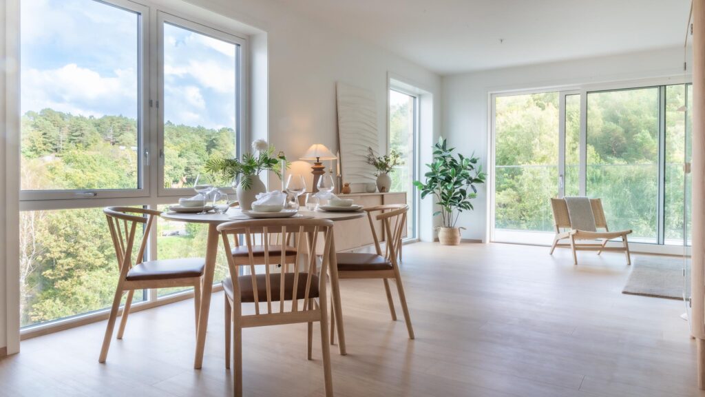 Du kan velge klokkeslett for å se når solen treffer den enkelte bolig, se intern beliggenhet og oppleve utsikt fra hver leilighet. Fokuset har vært på utsikt og sol, og det er derfor ikke fokusert på innredning, farger etc.