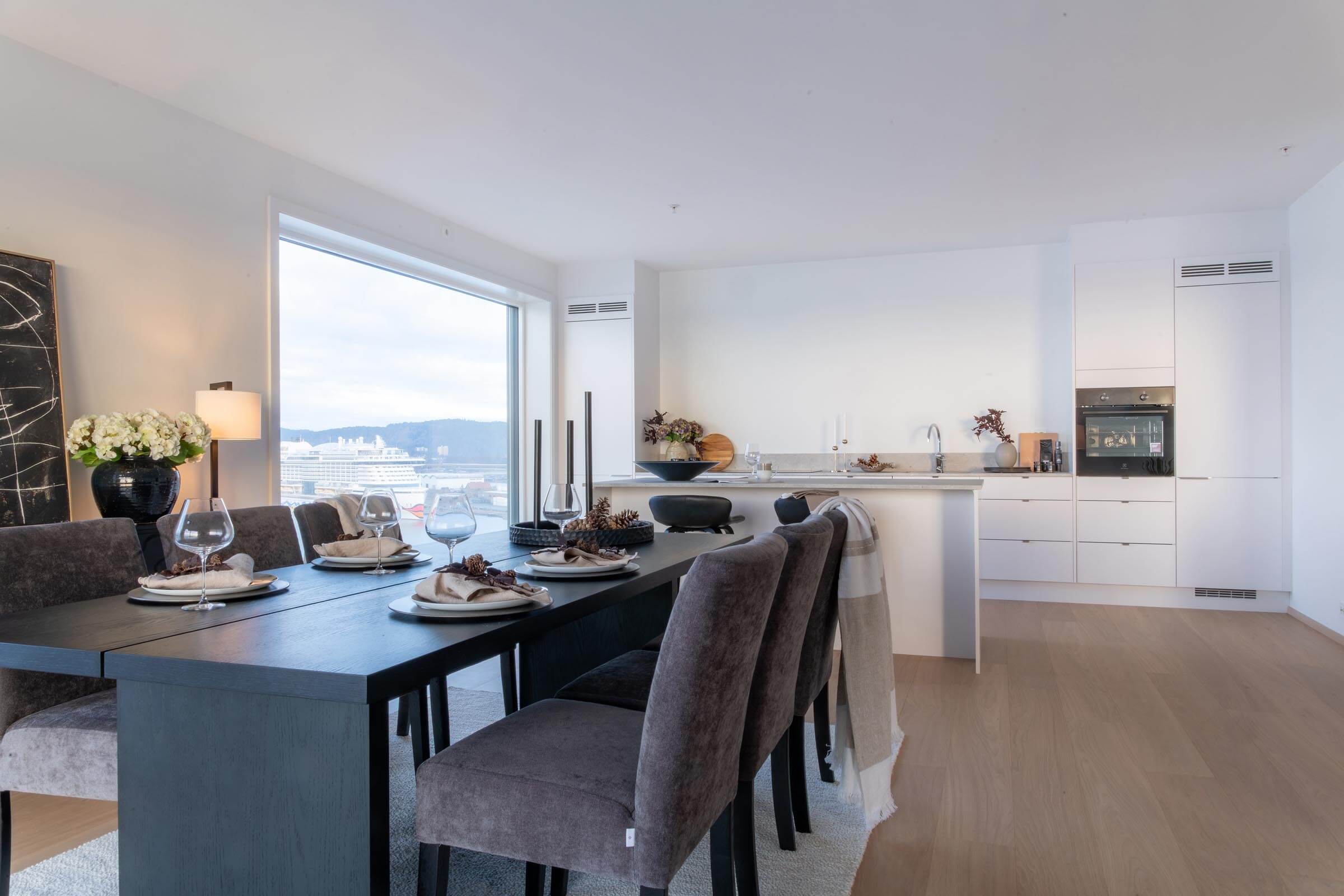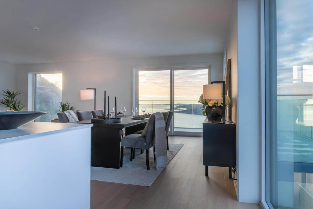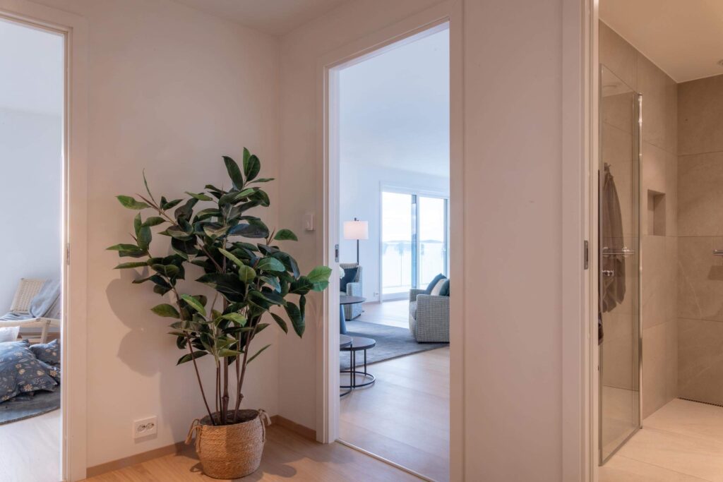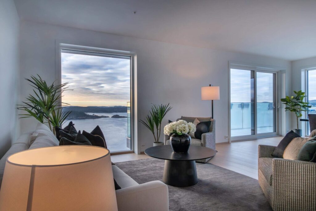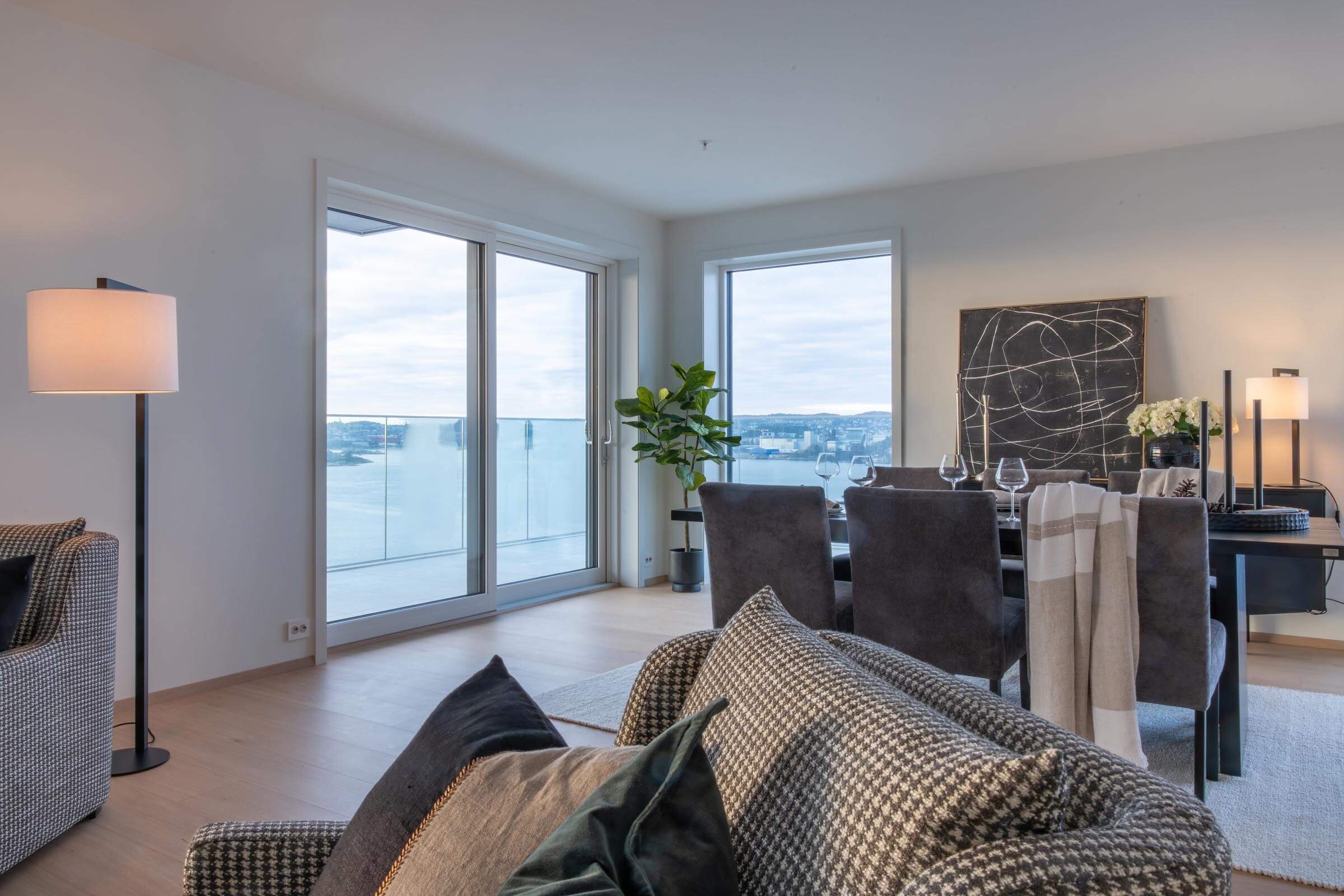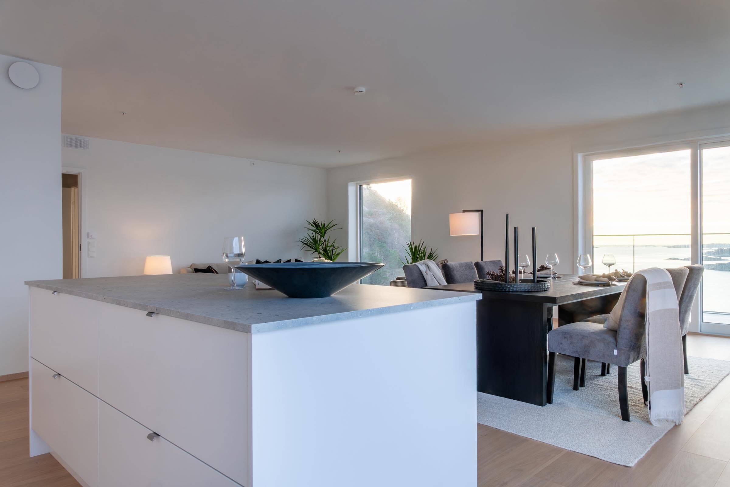 Du kan velge klokkeslett for å se når solen treffer den enkelte bolig, se intern beliggenhet og oppleve utsikt fra hver leilighet. Fokuset har vært på utsikt og sol, og det er derfor ikke fokusert på innredning, farger etc.