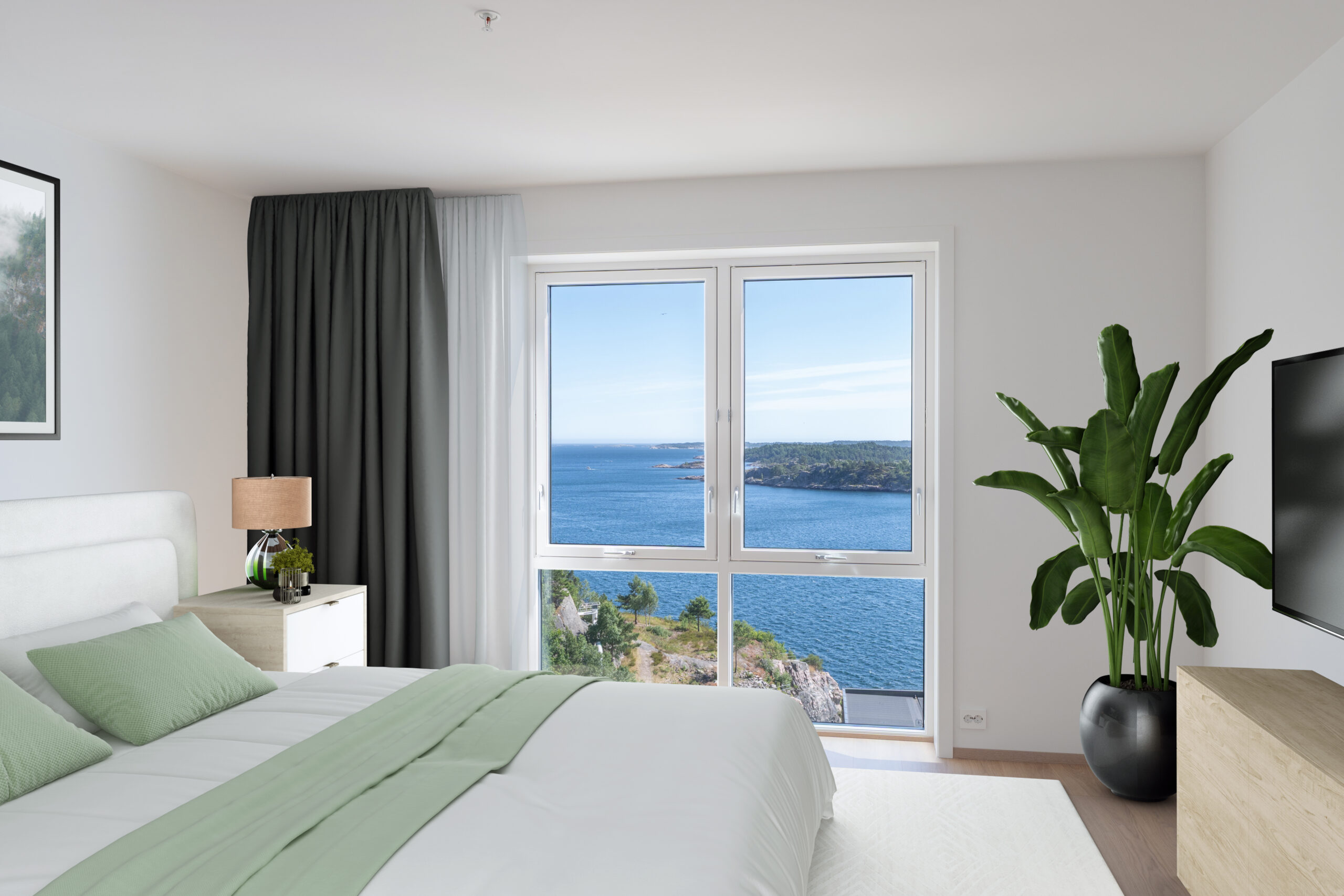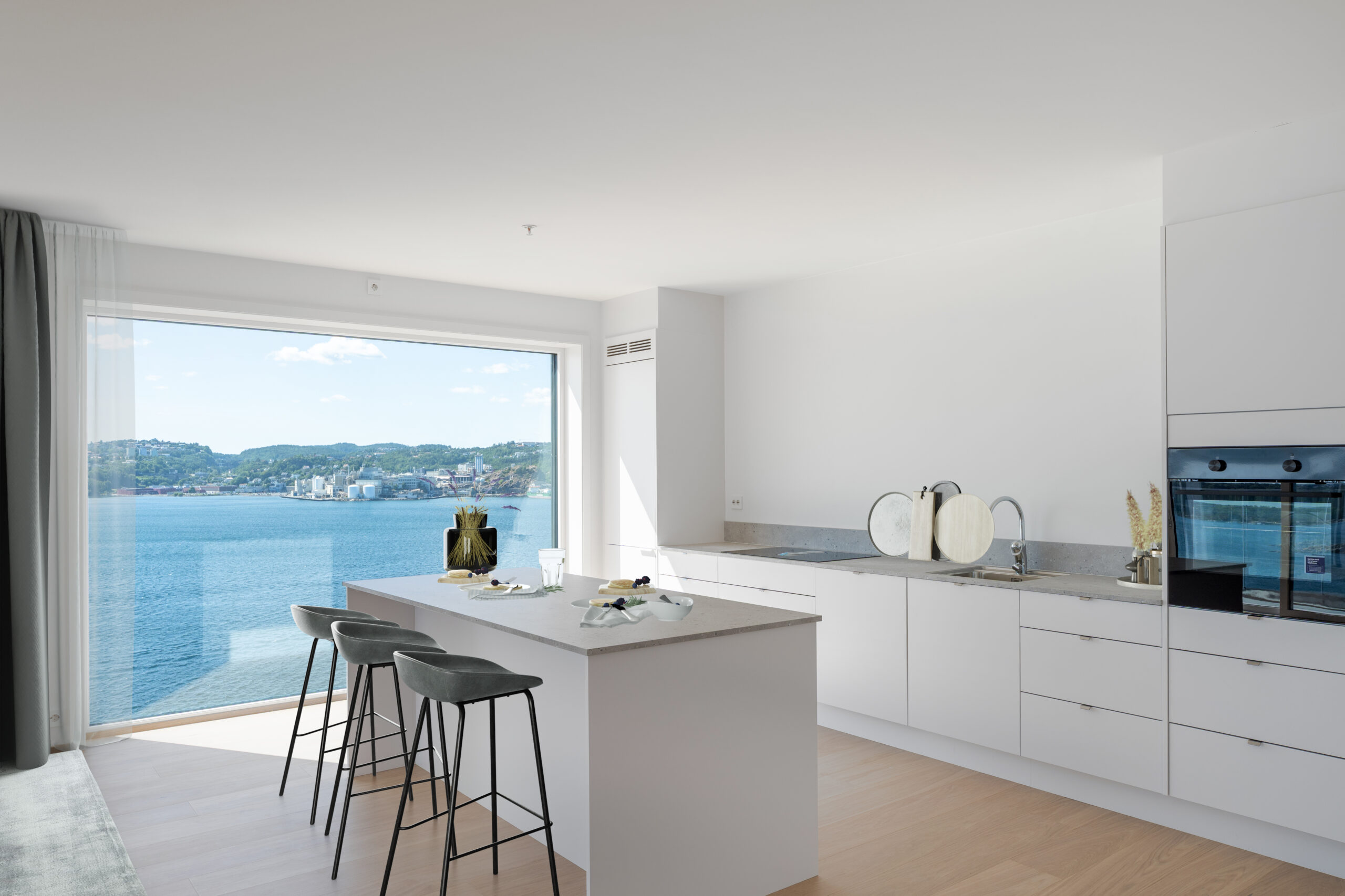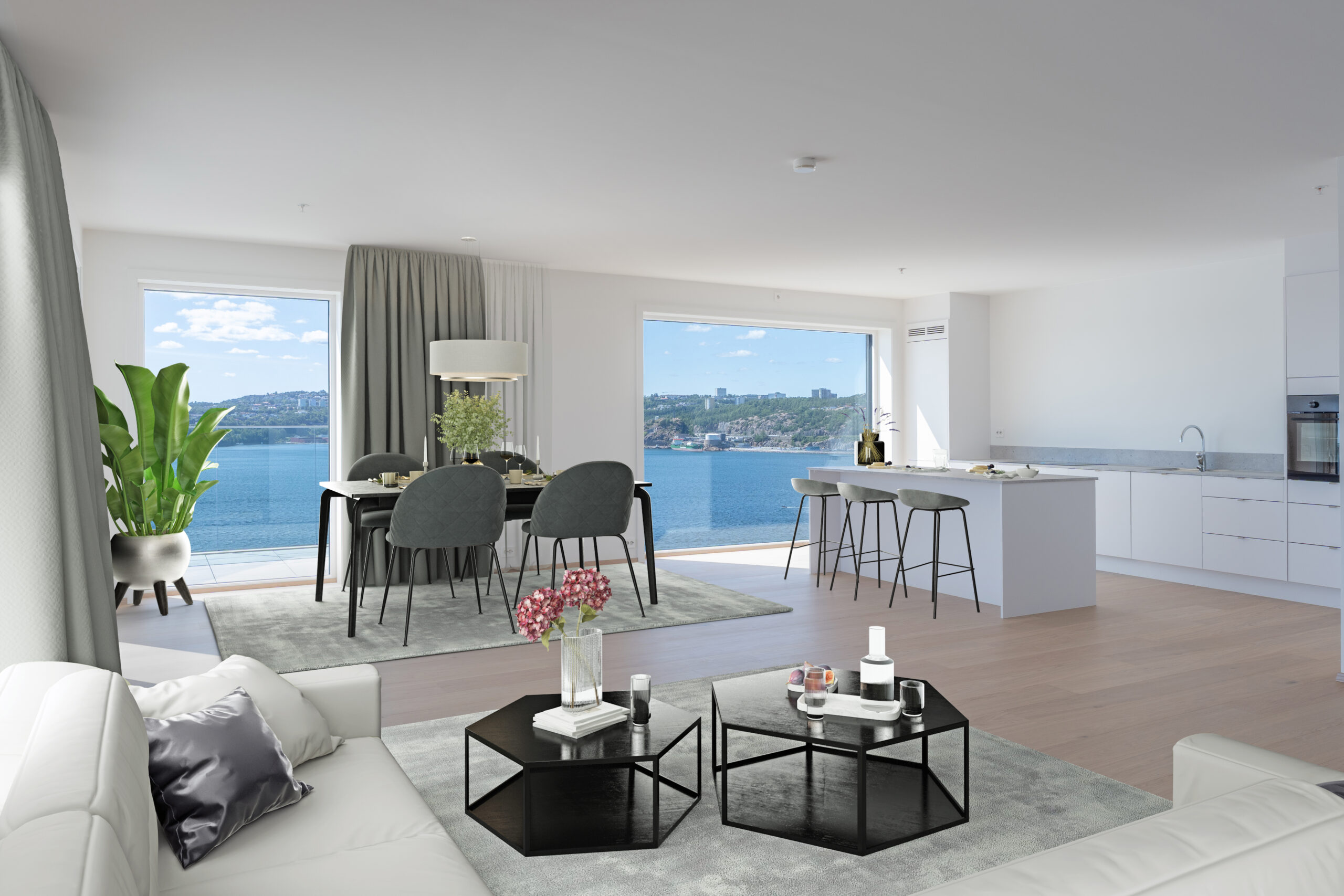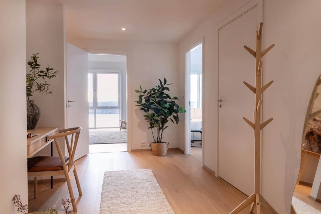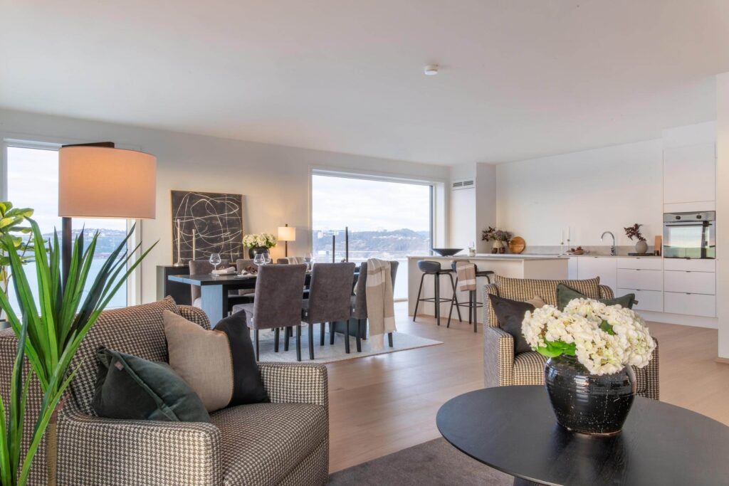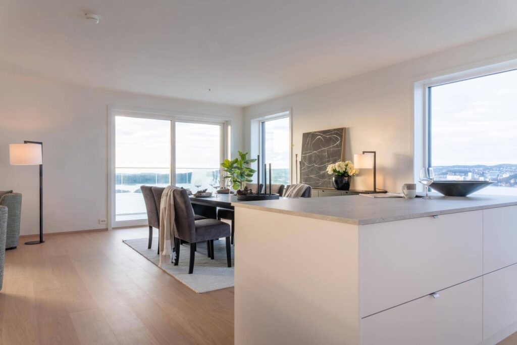 Du kan velge klokkeslett for å se når solen treffer den enkelte bolig, se intern beliggenhet og oppleve utsikt fra hver leilighet. Fokuset har vært på utsikt og sol, og det er derfor ikke fokusert på innredning, farger etc.